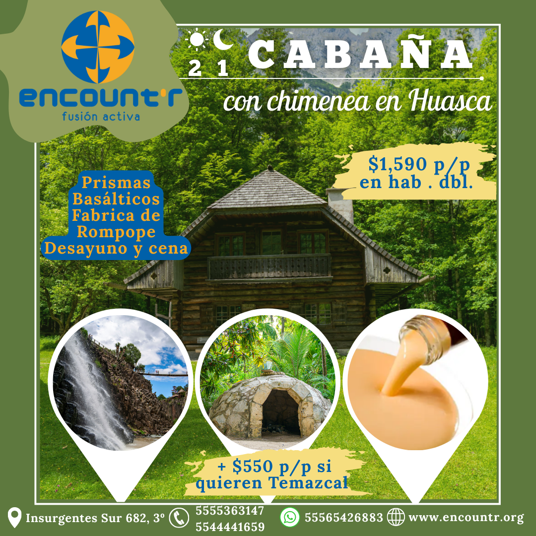Promociones vigentes Paquetes Fin de semana ó Un día de paseo Cabaña con Chimenea en Huasca de Ocampo ¿Deseas cotizar o tienes alguna pregunta que hacernos? ¡Escríbenos, con gusto te responderemos!